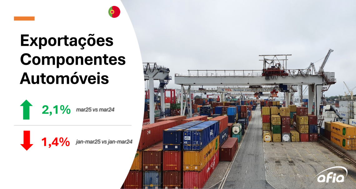 As exportações de componentes para automóveis registaram em março um crescimento de 2,1% em relação ao mesmo mês do ano anterior. É um crescimento relevante, tendo em conta os números do ano anterior e dos dois primeiros meses de 2025