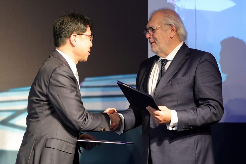 Young-hoon Kim, representante da KAICA, e José Couto, presidente da AFIA, assinaram um protocolo de cooperação entre as duas associações.